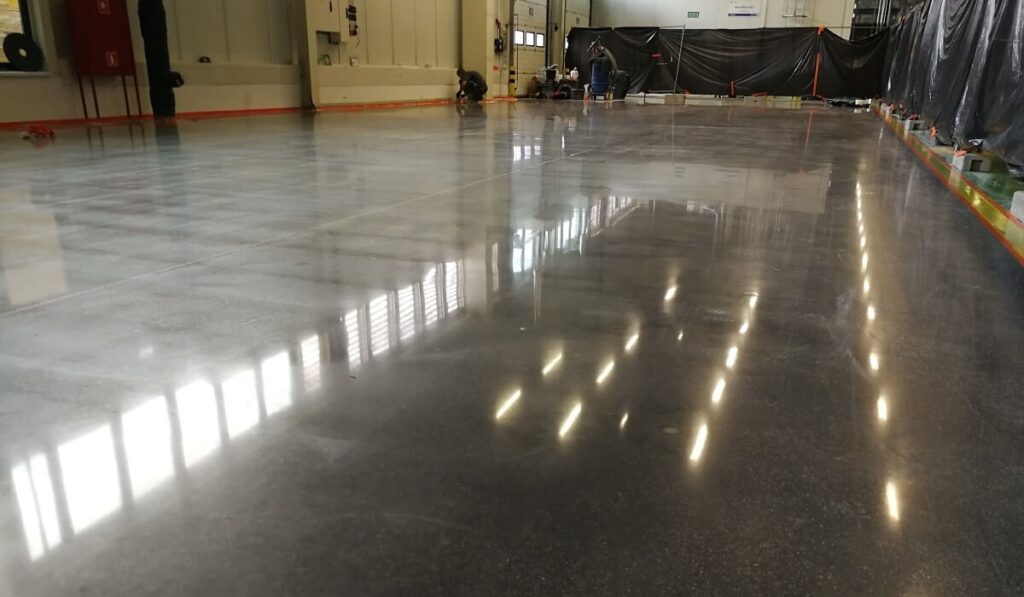 💎 Polerowanie betonu narzędziami do polerowania na sucho – domyka mechanicznie posadzkę nadając jej piękny, estetyczny wygląd.